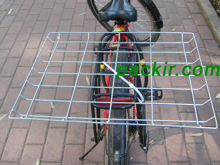 The metal basket can be fixed onto the back of the scooter by the fastening belts: